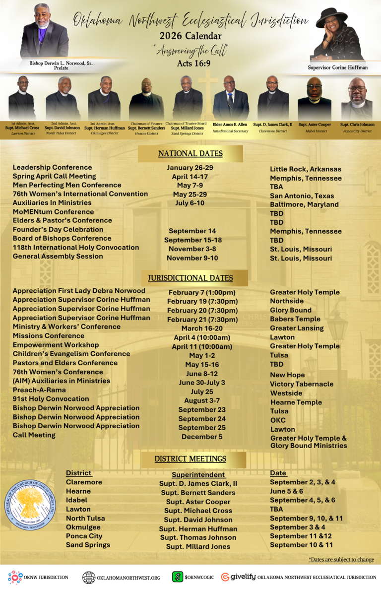 CASH APP | $OKNWCOGIC       |  GIVELIFY (OKLAHOMA NORTHWEST ECCLESIASTICAL JURISDICTION)